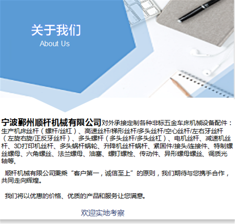 歡(huān)迎(yíng)來(lái)到寧波鄞州順杆(gǎn)機械有限公司官網!